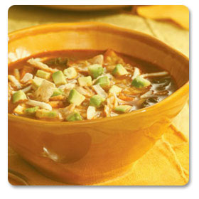 - Ladle the soup into 8 soup bowls. Divide avocado, tortilla chips and cheese (if using) among the bowls. Serve warm, with lime wedges.