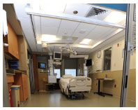 The design of the new 36-bed 4400 intensive care unit (ICU) was influenced by staff input and techniques gleaned from the automobile industry. The result: hallways 2 feet wider than standard and rooms that are longer. Beds rotate to face windows, reducing the risk of ICU delirium that causes patients to lose track of day/night cycles. Ceiling-mounted booms hold equipment and reduce room clutter. And a “sterile square” positioned inside the room’s doorway reminds staff and visitors just how far they can enter the room without wearing gloves and a gown. This innovation, one of the first of its kind in the United States, reduces costs and protects patients.